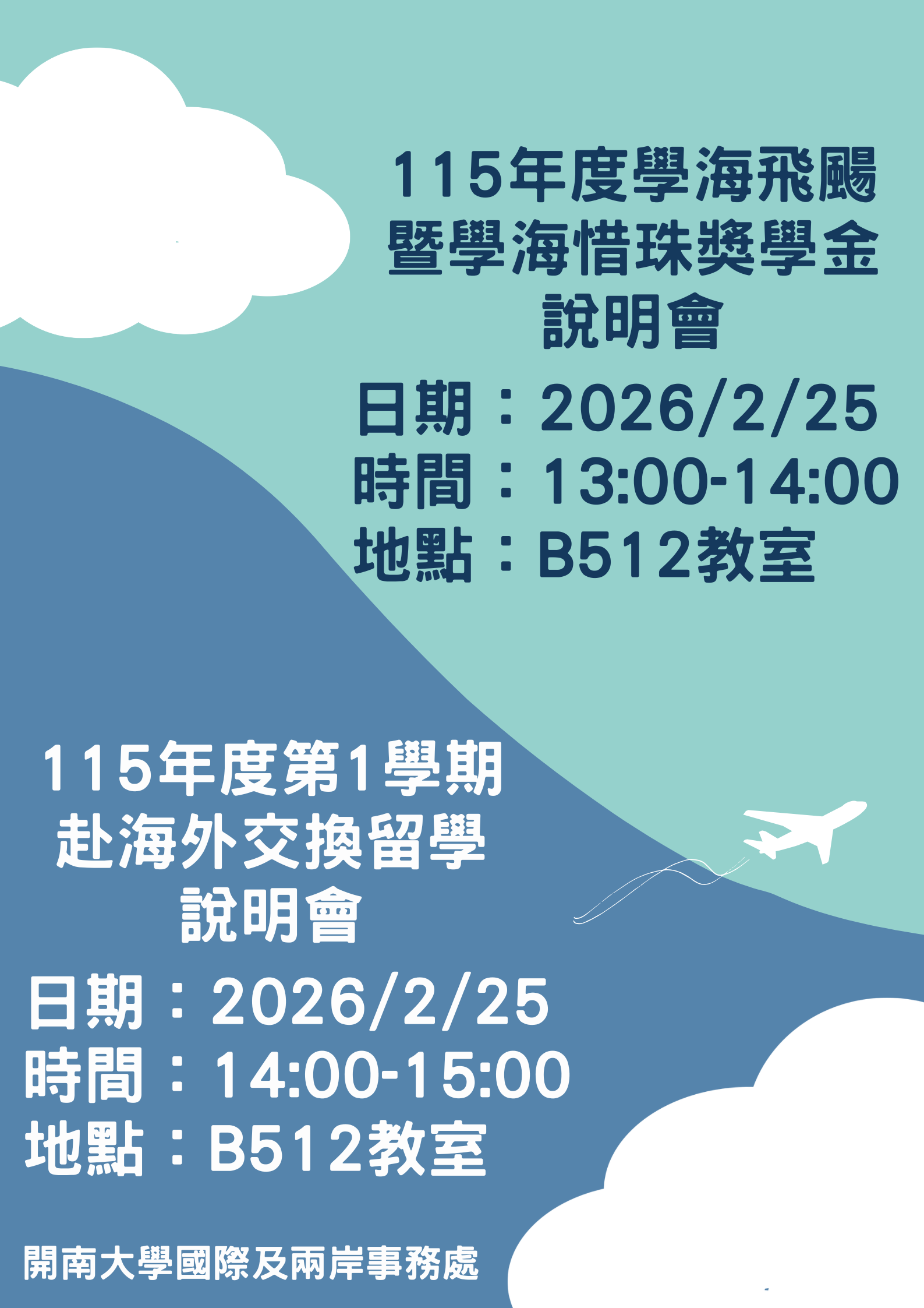 【說明會】115學年開南大學赴海外交換留學甄試暨學海獎學金說明會